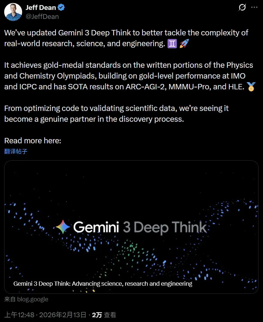 谷歌发布 Gemini 3 Deep Think,AI 在编程、数学、科学领域取得重大突破,部分用户已可体验。
