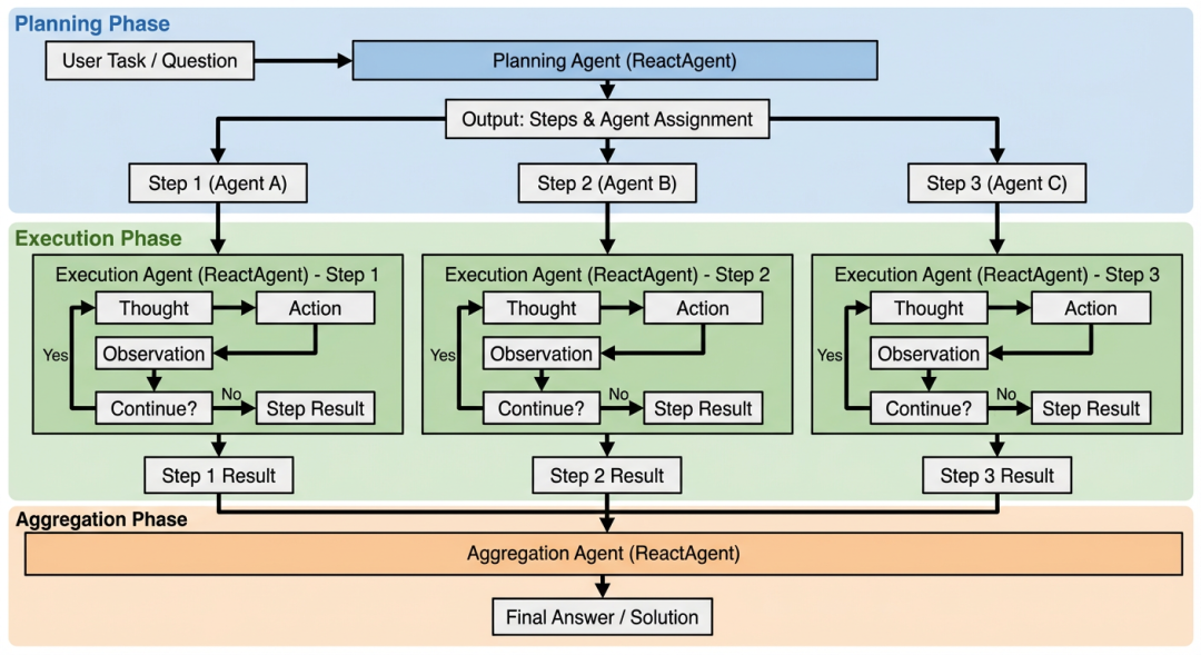 统一的抽象层:PlanActAgent被封装为标准的Multi-agent实现,可以像使用ReactAgent一样便捷地创建和调用。