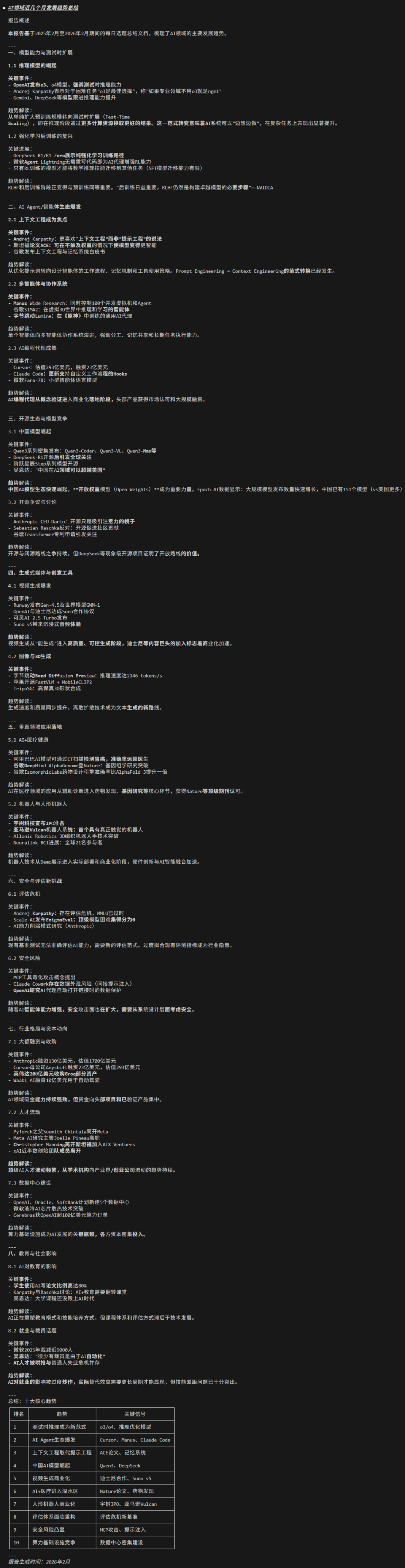 最后,我们还让 M2.5 基于我们的选题文档总结了近几个月 AI 领域的发展趋势,大家可以看看总结得是否正确: