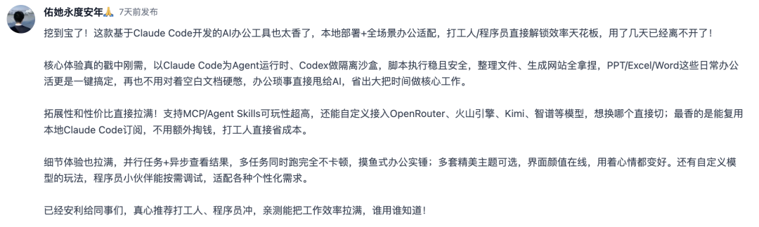 从本期榜单可以清晰看到一个信号:AI 的主战场正在从“会不会回答问题”,转向“能不能把事做完”。 桌面 Agent 的集中出现,是这一变化最直观的体现。相比以往停留在对话框里的助手,本周讨论热度最高的产品,已经开始直接接管桌面环境,真实操作网页、处理本地文件、生成办公文档,甚至跨多个应用连续执行任务。用户关注的核心不再是模型能力,而是 执行稳定性、流程完整度和对真实工作场景的适配程度。