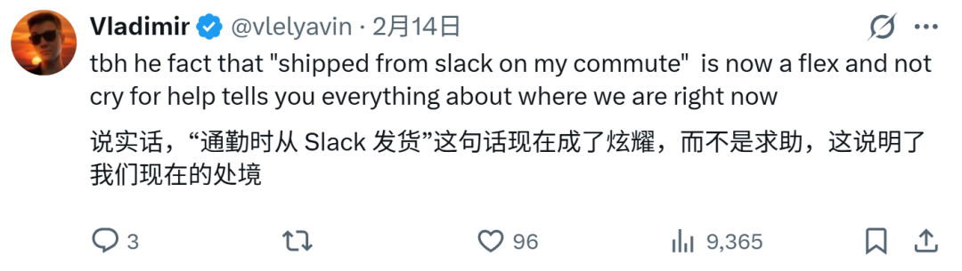 还有人犀利指出,把「在早高峰地铁上用 Slack 提交代码」当成光辉业绩来炫耀,本身就很荒谬。这不仅不像是技术的进步,反而更像是糟糕工作环境下的求救信号。