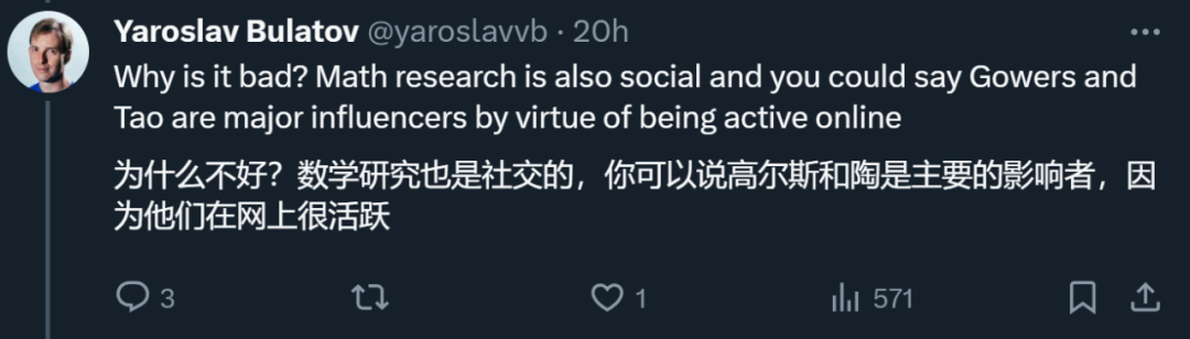 对于这个结果,也有人心态比较乐观,表示数学领域也有类似现象,比如陶哲轩等数学家偶尔也会在网上推荐一些研究。