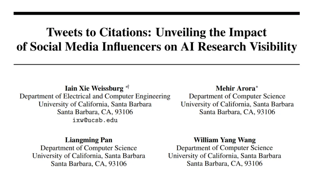 论文标题:Tweets to Citations: Unveiling the Impact of Social Media Influencers on AI Research Visibility