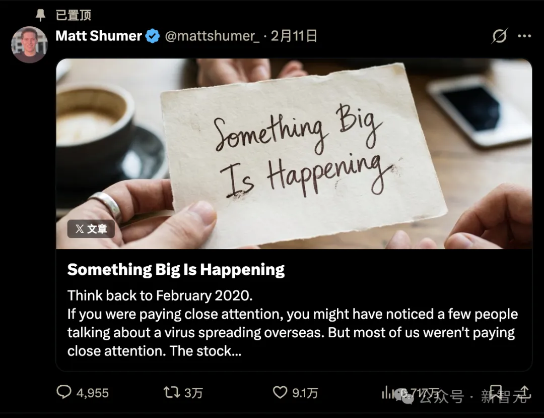 也是同一天,一篇名为《Something Big Is Happening》(大事正在发生)的文章,在推特上以核爆般的速度扩散,被《财富》杂志全文转载,被 Business Insider 等主流商业媒体报道。