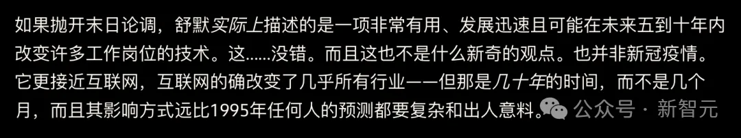 但即便是这些相对审慎的评论者,也无人否认AI正在发生质变。分歧只在于速度和烈度。