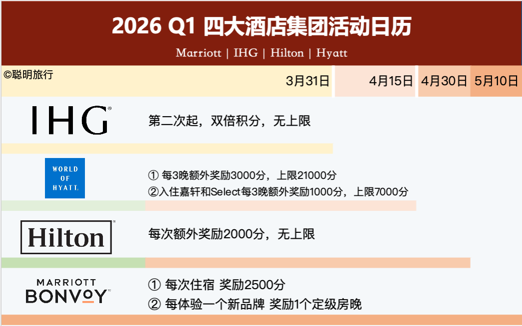 从积分价值的角度分析,如果能高效完成IHG的周期活动,获得的积分价值可能更高。但考虑到品牌覆盖和个人出行习惯,我会优先考虑万豪,毕竟旗下品牌够多,叠加Q1活动,升级保级两不误。