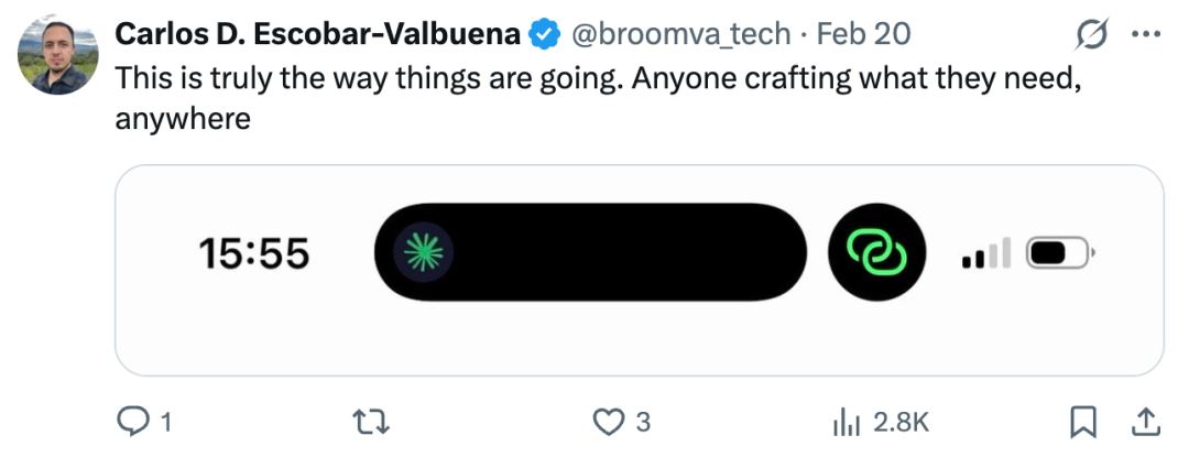 「得了吧。你真觉得你奶奶想自己做个 App?更别说还要维护它了。大家都忽略了一点,光是「想清楚自己到底想要什么」这件事本身就已经需要消耗大量的心力了。App 存在的整个逻辑,某种程度上是建立在这样一种信任上的:设计师们,加上用户们的集体反馈,能够设计出一种工作流或交互范式,它比你单打独斗想出来的要更好。这在 99% 的情况下都是成立的。就算全球有 1% 的用户想要为那种超级特定的需求搞定制化应用,我都会惊掉下巴。不是说这东西没用,但它离普通用户想要的实在差得太远了。」