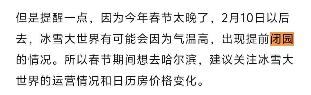 问题:文中提到了冰雪大世界因为气温升高而闭园,那么类似的冰雪旅游项目,在气候变化的大背景下,未来应该如何应对?