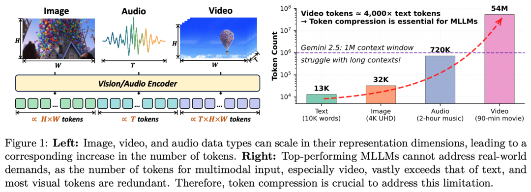 然而,一张高清图、一段长视频或长音频产生的 Token 数量往往是文本的数千倍,不仅挤占了宝贵的上下文窗口,更因自注意力机制的二次复杂度导致推理成本飙升。如何「给 Token 瘦身」?