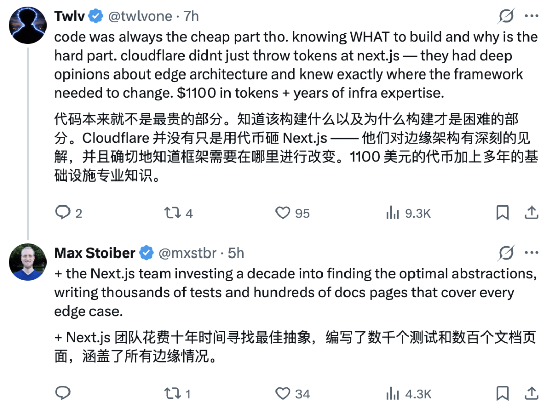 这一案例之所以受到社区热议,是因为它是一个清晰的拐点:AI 真正作为协作伙伴参与、主导大型系统级实现。并且,AI 抛弃了很多中间框架,让真正基础性的代码部分和便于人类认知代码结构的分界线逐渐显现。