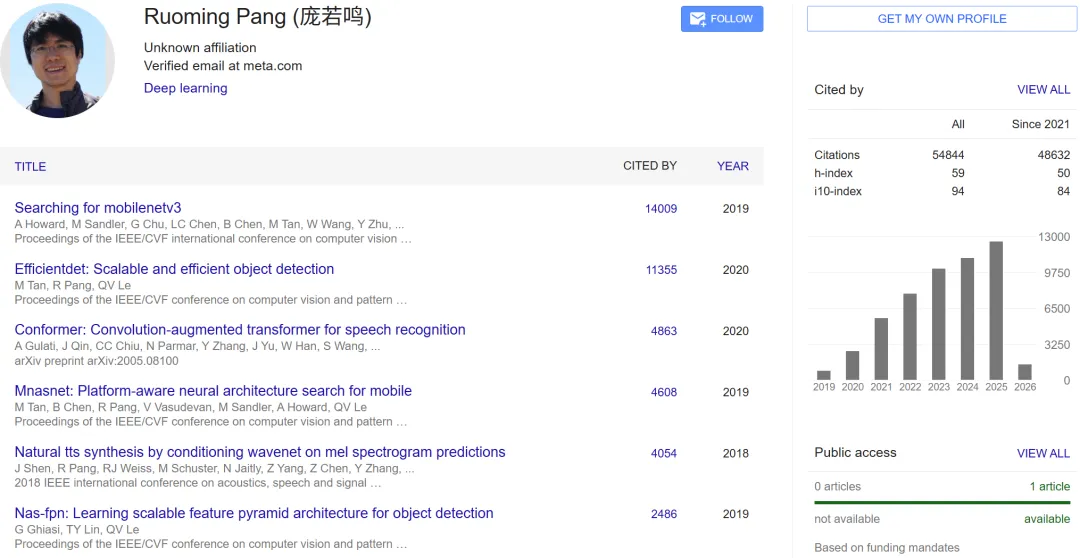 庞若鸣的职业生涯跨越了多家科技巨头,他本科毕业于上海交通大学。他在谷歌工作了 15 年,先后加入了苹果与 Meta: