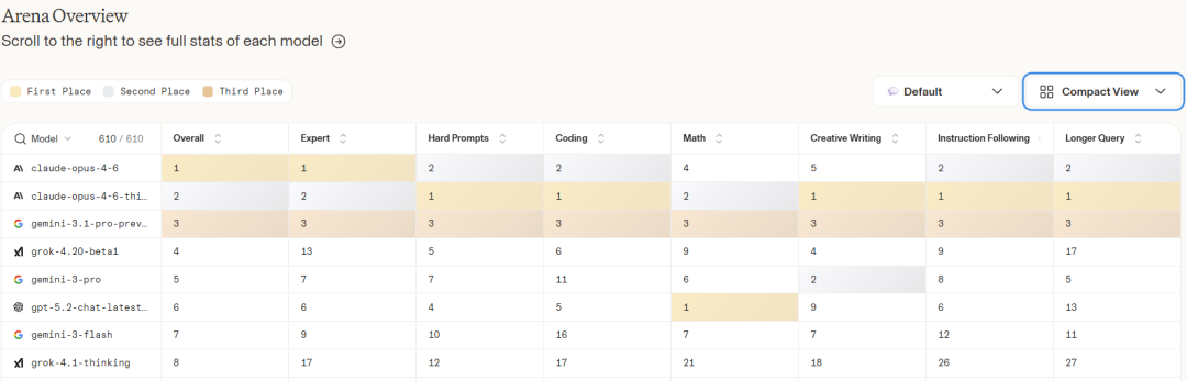 比如 Arena AI 发布了一份数据,经过 3992 位用户的评测,Grok 4.20 在评估搜索实时信息、外部知识和可靠引用的能力的 Search Arena 中目前排名第一,超过了 GPT-5.2、Gemini 3.0 Pro 等模型。