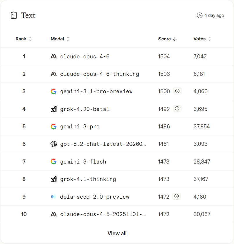 而在评估 LLM 在文本的通用性、语言精确性和文化背景方面的能力的 Text Arena 上,Grok 4.20 排名第 4。