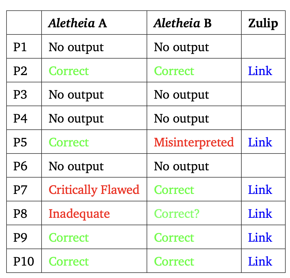 这些问题在挑战启动前从未公开证明,组织方提前将标准证明加密保存,以尽量排除训练数据泄露的可能。最终提交的答案,需要由领域专家人工审阅,判断其逻辑严密性与学术可接受度。评价标准接近论文审稿,而非自动判分。