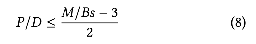 其次是 DRAM 压力分析。DRAM 是半双工的,因此将读取和写入压力相加。对于 PE 内存,其压力为 2sB,这通常不会超过内存带宽。对于 DE 内存,遵循上述类似的分析,可以得出其压力为 (3 + 2P / D) Bs。要求 DE 内存压力小于或等于 M,得到如下: