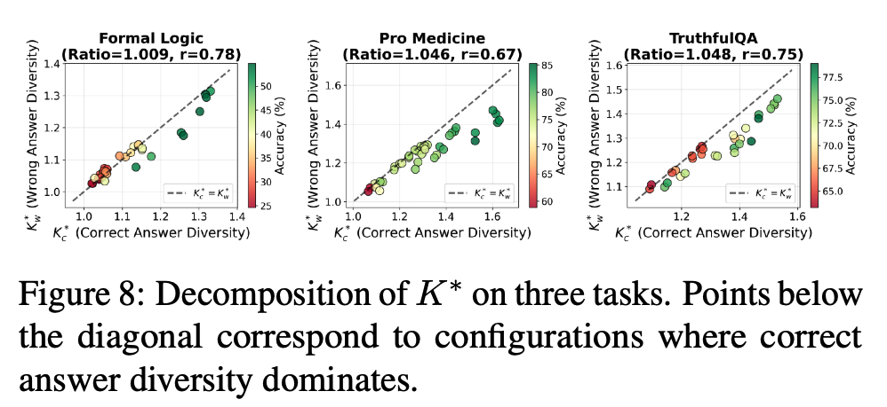进一步地,作者将系统输出拆分为「正确推理路径」与「错误推理路径」,分别估算其对应的有效信息通道数量。实验一致表明:当正确推理路径对应的有效信息通道更多时,多智能体系统表现更好。这意味着系统设计不应盲目追求多样性本身,而应追求与任务相关的推理多样性 —— 即提升与正确推理相关的有效信息通道数。