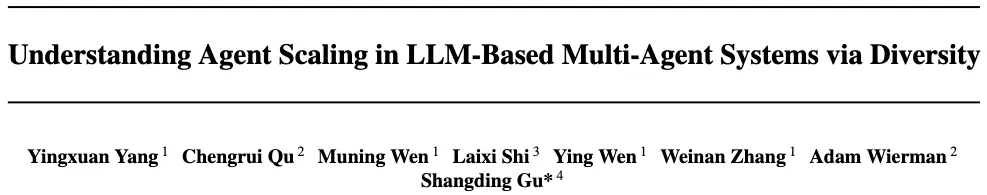 来自上海交通大学、UC Berkeley、加州理工学院以及约翰・霍普金斯大学的联合研究论文 Understanding Agent Scaling in LLM-Based Multi-Agent Systems via Diversity 表明:多智能体系统「扩不动」的真正原因,并不是 Agent 不够多,而是信息冗余。 系统实验发现,单纯堆规模收益迅速枯竭,而引入多样性可以显著延缓饱和、以更少的 Agent 获得更强的性能。