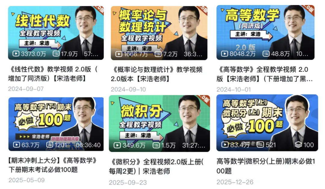 在 B 站上,宋浩老师的高数课程累计播放量早已突破 5 亿,每天有 20 万人在线“修仙”。