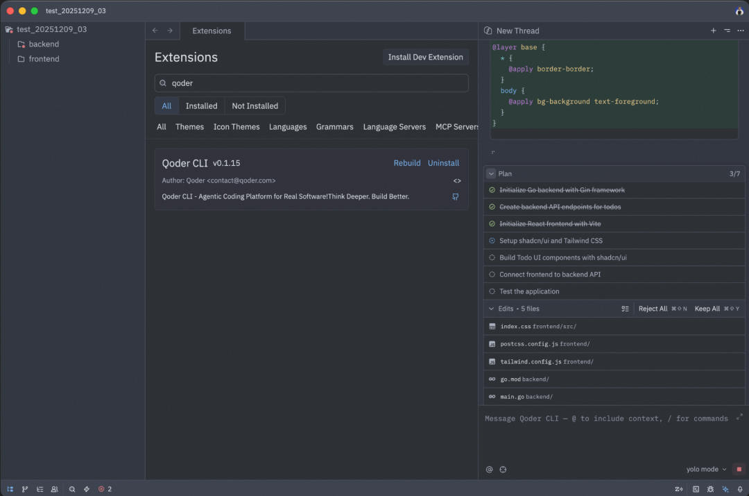 Qoder CLI 在快速原型开发场景中展现独特优势,通过特定的代码开发框架、标准 MCP,我们可以将 AI Coding 扩展到各类办公场景。