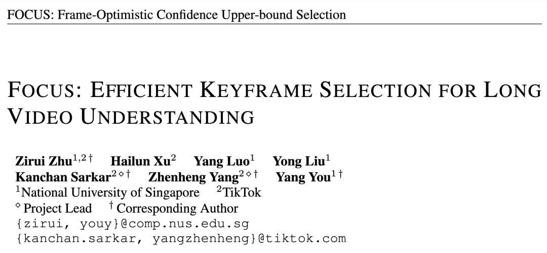 论文标题:FOCUS: Efficient Keyframe Selection for Long Video Understanding