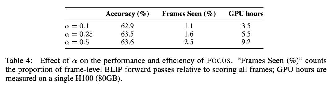 3、FOCUS 算法平均仅需观察不到 2% 的帧即可达到较好的性能提升,这在提升效率的同时,是否会遗漏一些关键信息?有没有可能存在一些特定的视频内容,会导致 FOCUS 算法失效?