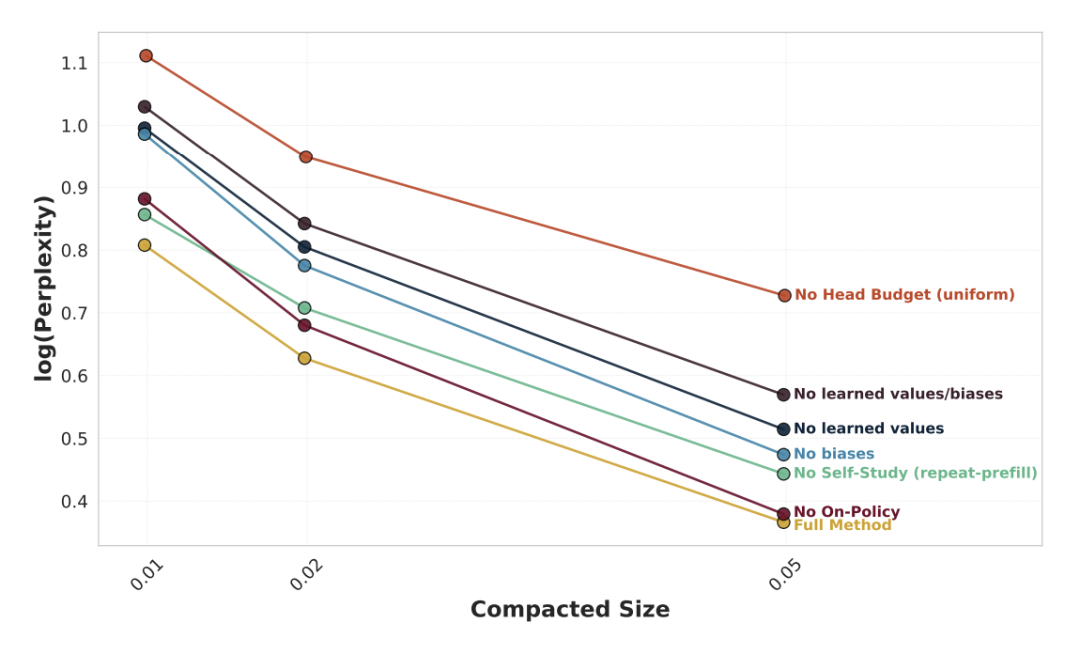 算法首先需要一组查询向量 作为优化目标。研究采用了 Repeat-prefill 和 Self-study 两种机制,提示模型针对当前上下文生成对话以拓宽查询分布。