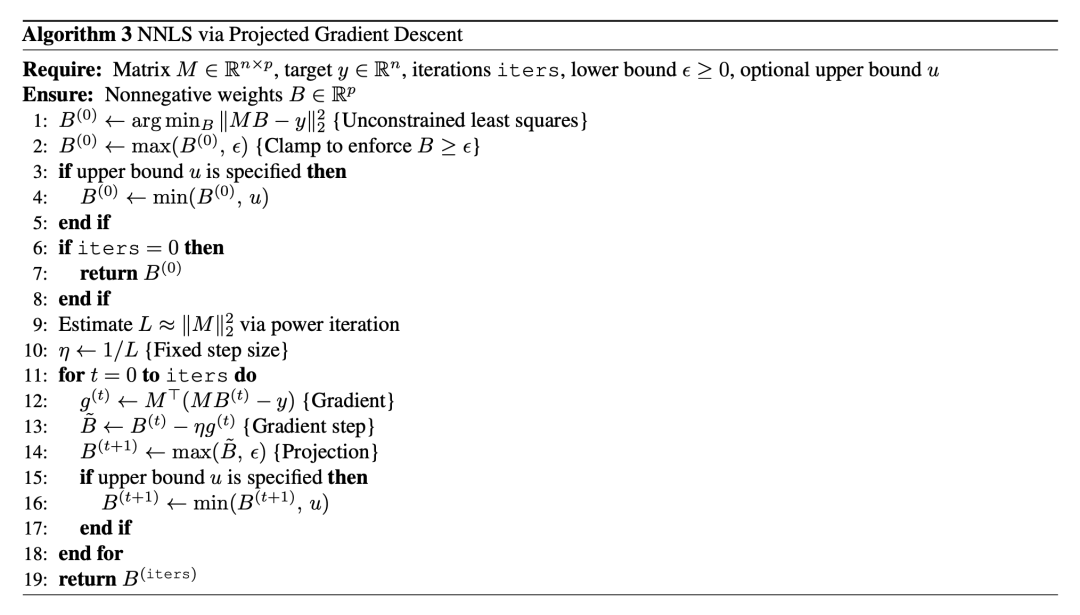 选定 后,求解 被转化为一个非负最小二乘法(NNLS)问题。