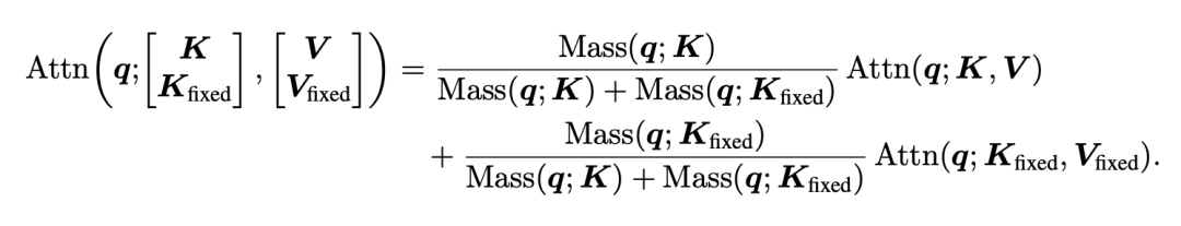 研究团队在附录中给出了一个关键的混合恒等式,拼接注意力块的最终输出,实际上是各个局部注意力输出的混合,其混合权重由各自的注意力质量(Attention Mass)决定。