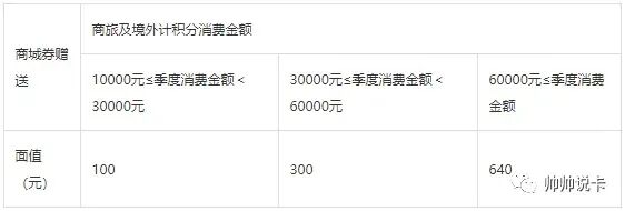 10000元≤季度消费金额<30000元,送100元广发商城券;