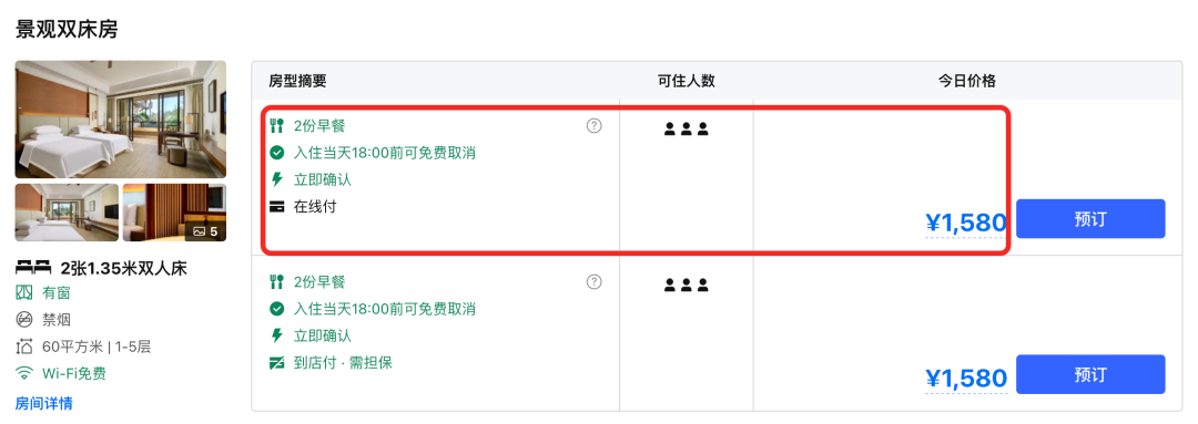 海景客房2晚+双早+鸡尾酒,1468元。有效期到5月底,全程不加价!