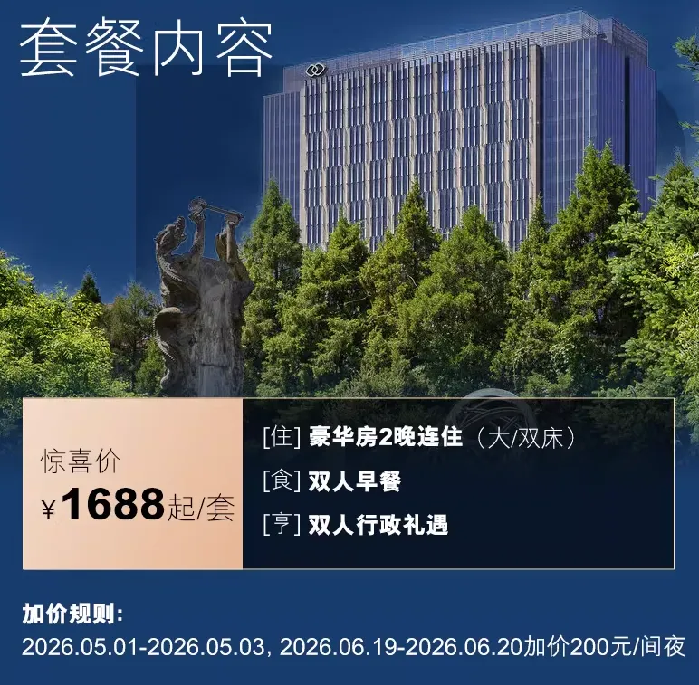 君悦套房2晚+双早+双人行政酒廊+双人脱口秀入场券+汉服体验等,1799元。全程不加价!