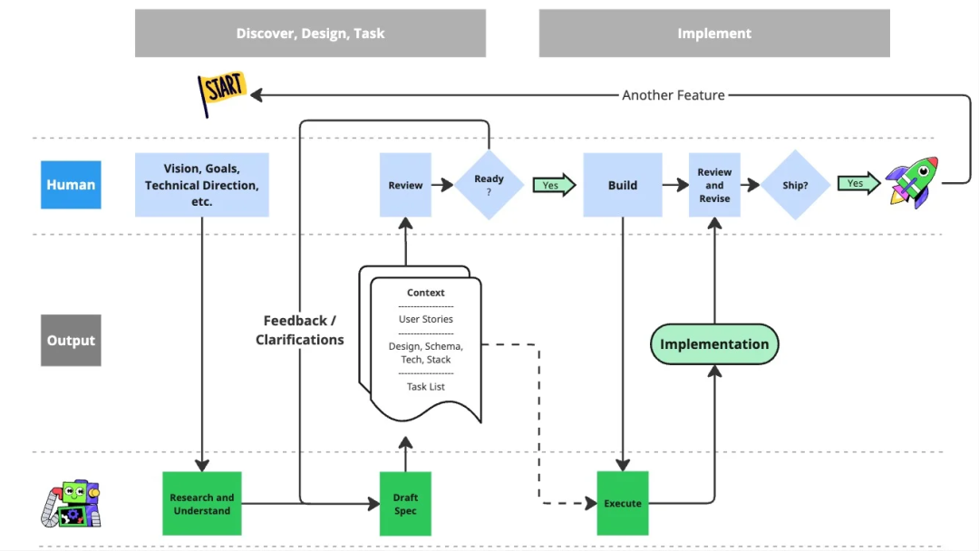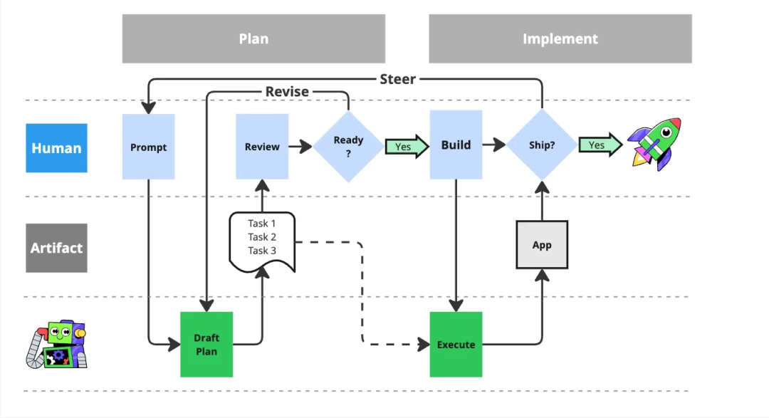 然而,人类与 AI 之间的交互仍然是战术性和指令式的。由于计划通常不会在执行后保留,代码实现本身就成了后续迭代与功能新增的主要上下文。