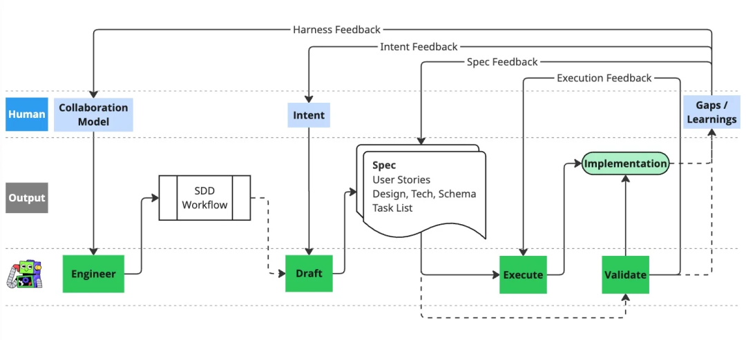 有了 SDD,对话不再仅仅发生在人与人之间。规范成为产品、架构、工程与质量团队的协作界面,他们共同构建执行上下文,并由 AI 智能体转化为具体行动。而规范编写中的反馈循环,正是这类协作落地的核心环节。