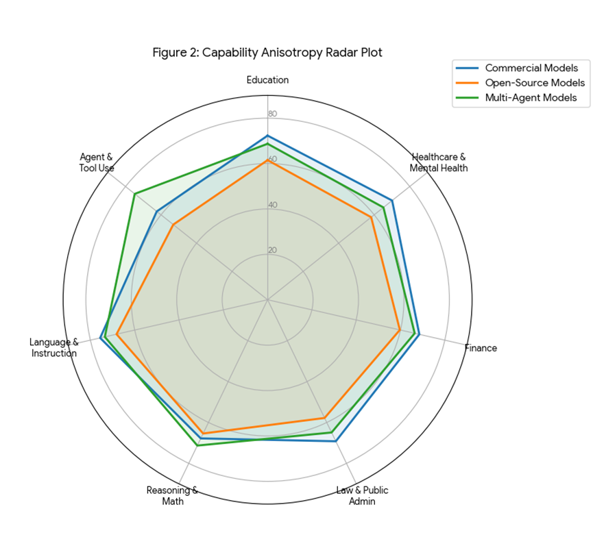 专业领域:商业模型在医疗、法律等垂直领域依然保持显著优势,平均分差约 12 分。