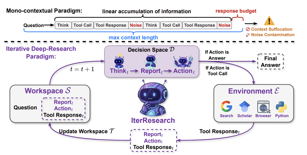 来自中国人民大学与阿里巴巴通义实验室的研究团队提出了 IterResearch,一种全新的迭代式深度研究范式。