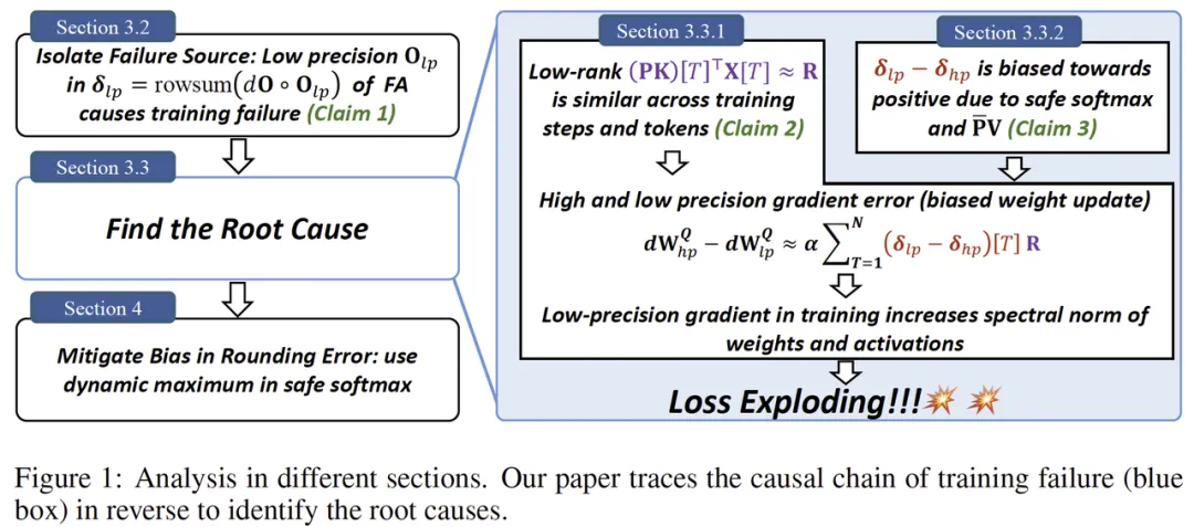 一句话总结:社区里困扰了多年的一个 “玄学” 现象终于被拆解清楚了:在 BF16 等低精度训练里,FlashAttention 不是随机出 bug,而是会在特定条件下触发有方向的数值偏置,借助注意力中涌现的相似低秩更新方向被持续放大,最终把权重谱范数和激活推到失控,导致 loss 突然爆炸。论文还给出一个几乎不改模型、只在 safe softmax 里做的极小修改,实测能显著稳定训练。