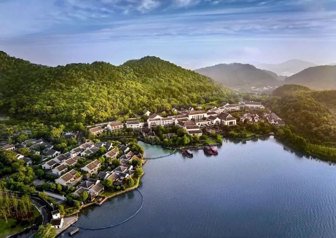 大中华区首家柏悦度假酒店,坐落于东钱湖畔,由古村落改建,完美融合明清古建筑群与东钱湖湖光山色。白墙灰瓦,一步一景,满满的江南水乡风格,