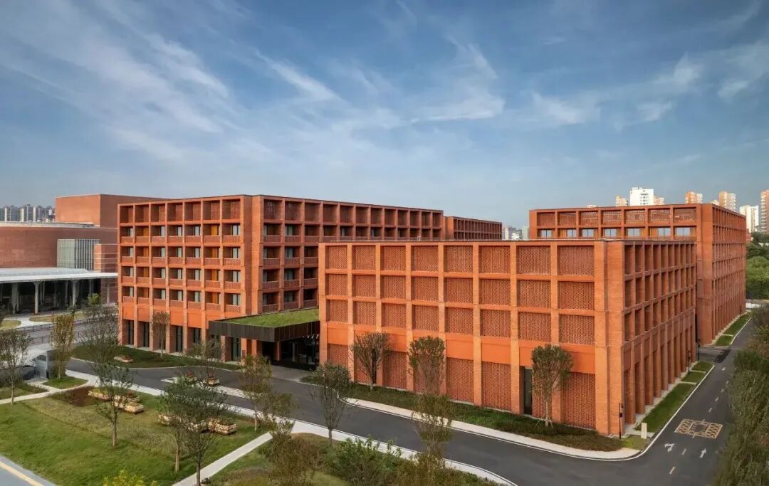 2家酒店开在一起,位于千年瓷都景德镇,毗邻陶溪川文创街区和雕塑瓷场。红砖围砌的赭红色回字形方块建筑,好看又出片。