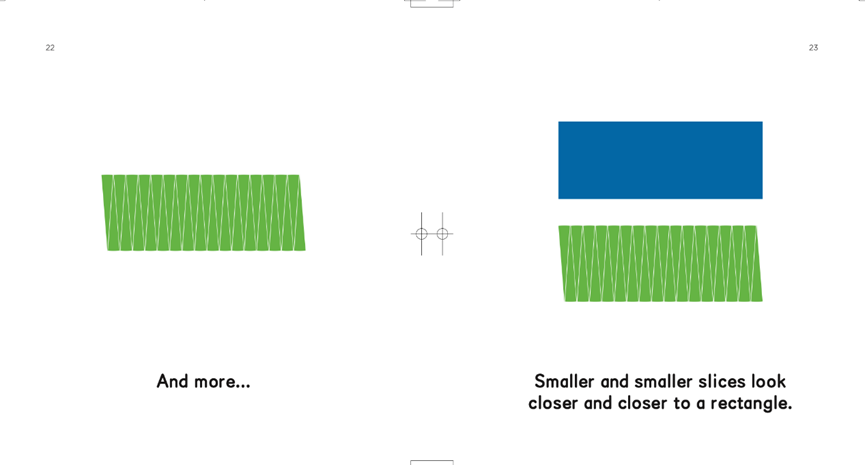 像切蛋糕一样解释极限:把圆形影子切成扇形,切得越小、数量越多,堆叠起来就越接近长方形。
