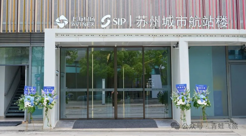 上海机场苏州城市航站楼位于苏州工业园区旺墩路268号18栋(圆融天幕东街18栋),服务热线:400-8069-321,设有航空基础功能区、贵宾服务区以及商业互动区。项目由新建元建设、新时代运营,定位于集航空服务、城市展示、商务服务为一体的多功能城市会客厅,可提供航班查询、值机办理、行李预安检、行李托运、苏航专线、旅客快捷安检等“一站式”功能,并拥有定制化接送机、贵宾通道等增值服务。