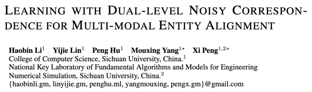 论文标题:Learning with Dual-level Noisy Correspondence for Multi-modal Entity Alignment