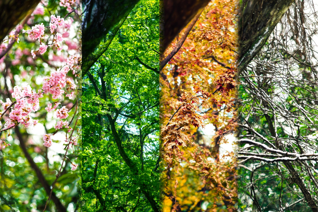 生成同一棵樱花树的四季景色更迭: