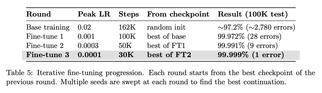 第三轮微调 (lr=0.0001): 错误数降至 1,准确率达到 99.999%
