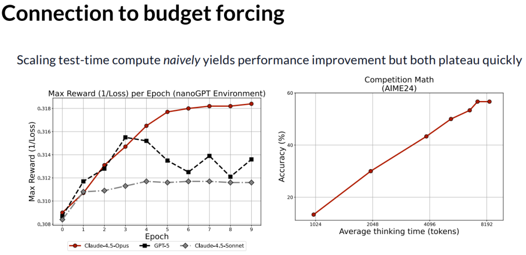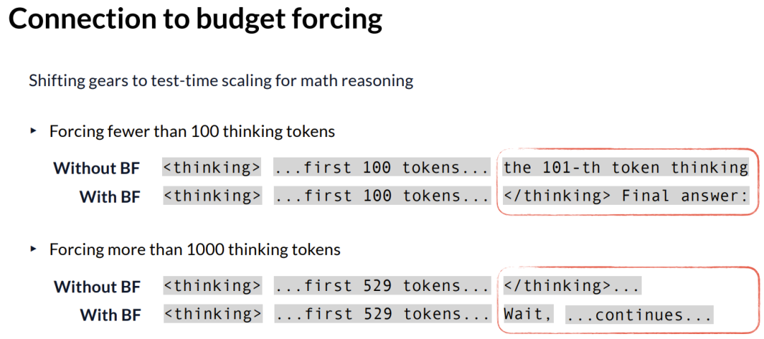 因此,无论是算法搜索还是预算强制,从原则上讲,我们都在类似编写一个非常简单的循环,强迫模型一直运行下去。