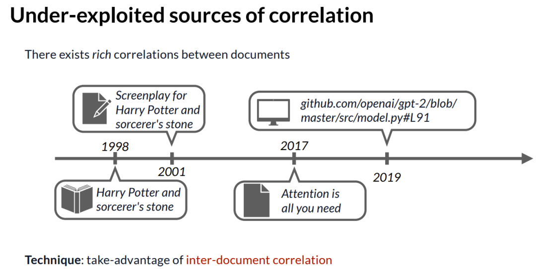 所以,如果预训练的知识就是来源于此,我认为,在当前的预训练范式中,遗漏了一个丰富但未被充分利用的相关性来源。即现有的互联网文档之间存在极其丰富的相关性。