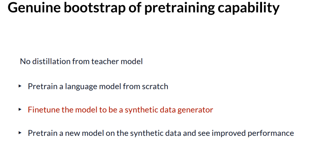 如果我们能成功验证这条流水线,我们就看到了一种对预训练能力的真正自我改进。这正是「合成引导预训练(Synthetic Bootstrap Pre-training)」。