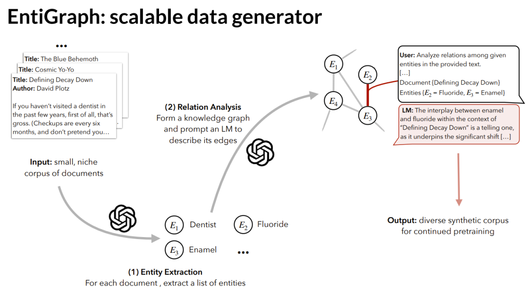 它缺乏多样性,这就是为什么我们提出了这种称为「实体图(EntiGraph)合成数据生成」的数据增强技术。
