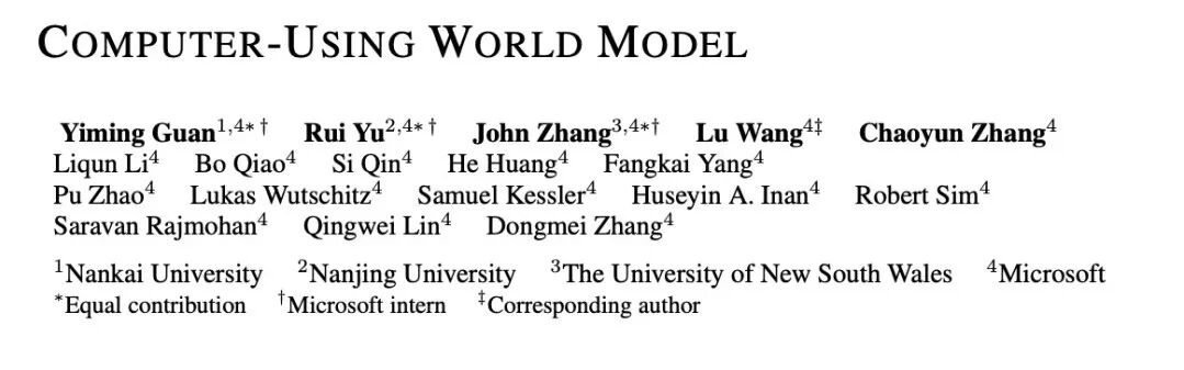 CUWM 的作者是微软实习生以及微软 UFO 团队的成员,包括 Yiming Guan、Rui Yu、John Zhang、Lu Wang、Chaoyun Zhang、Liqun Li、Bo Qiao、Si Qin、He Huang、Fangkai Yang、Pu Zhao 等。