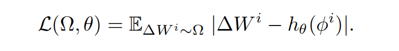 优化目标为最小化超网络输出 与目标适配器权重 之间的 L1 绝对值误差: