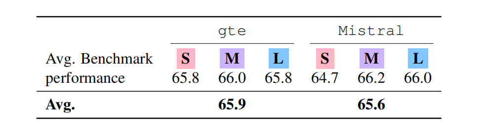 此外,消融实验表明,即使更换底层的文本 embedding 模型(从 gte-large 切换为 Mistral 原生 embedding),Text-to-LoRA 依然维持着稳定的自适应性能。